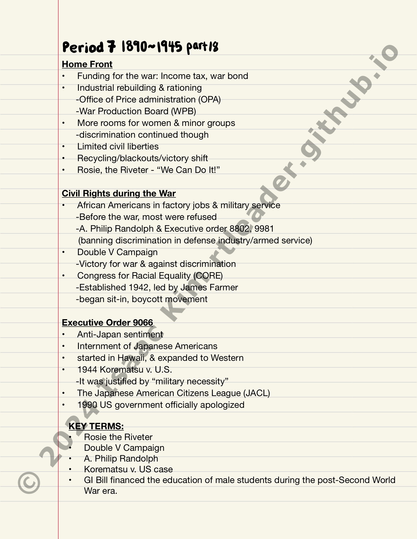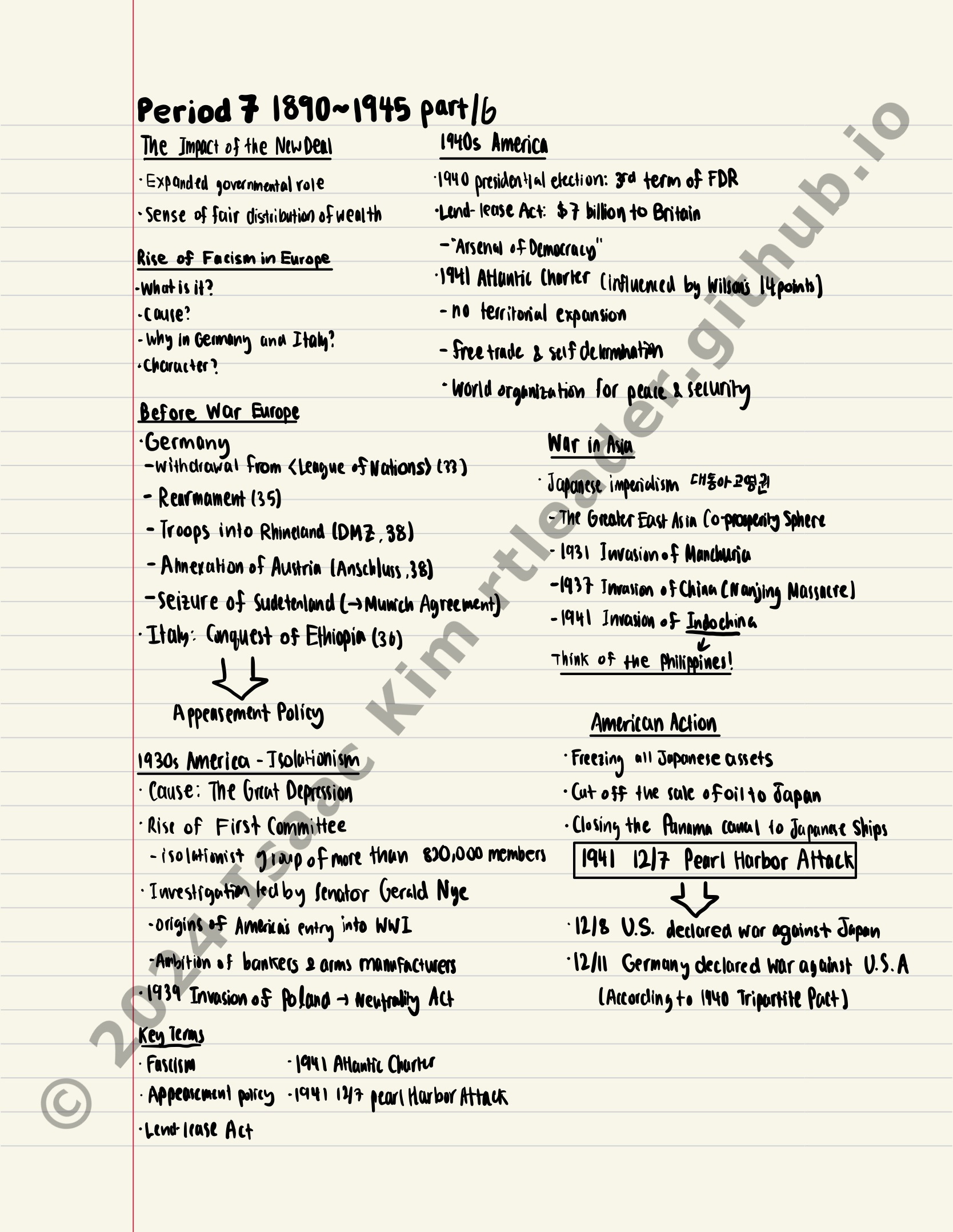 Causes of World War II, US involvement, & wartime changes.